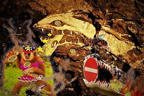 крокодил(снизу, со знаком STOP в пасти) - рукотворный монстр из парка страшнилок с динозаврами.