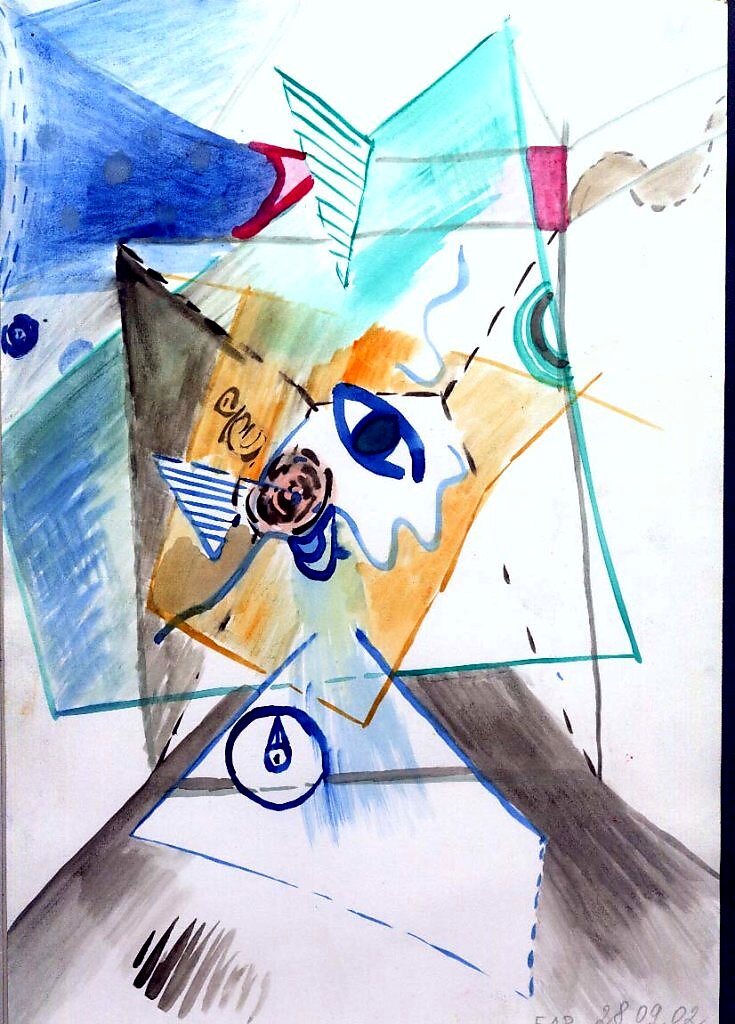 рисунок выполнен в 2000 году акварелью,каждый видит в этом рисунке свои миры и переходники в параллельные вселенные и наличие разума