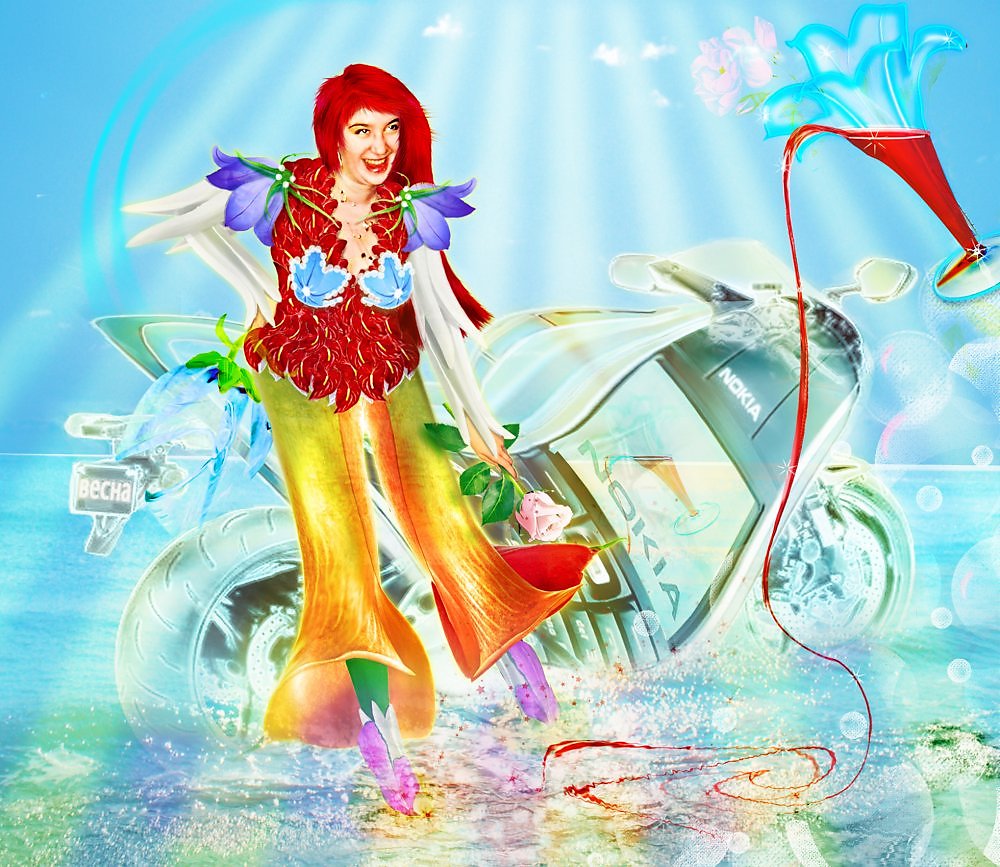 Работа на конкурс "Одеть девишну в костюм из цветов". Использованы фото, клипарты и мой любимый фотошоп.