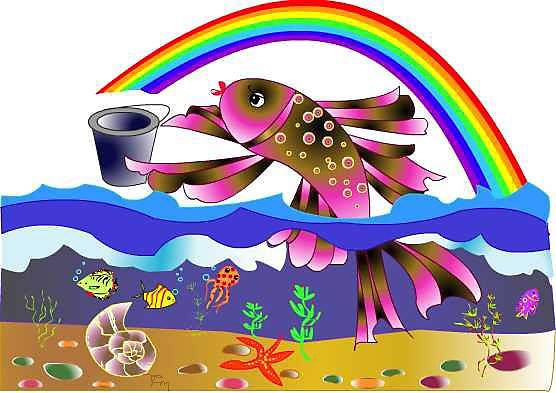 Рыбка ловит радугу.. Фрагмент учебного мультфильма.