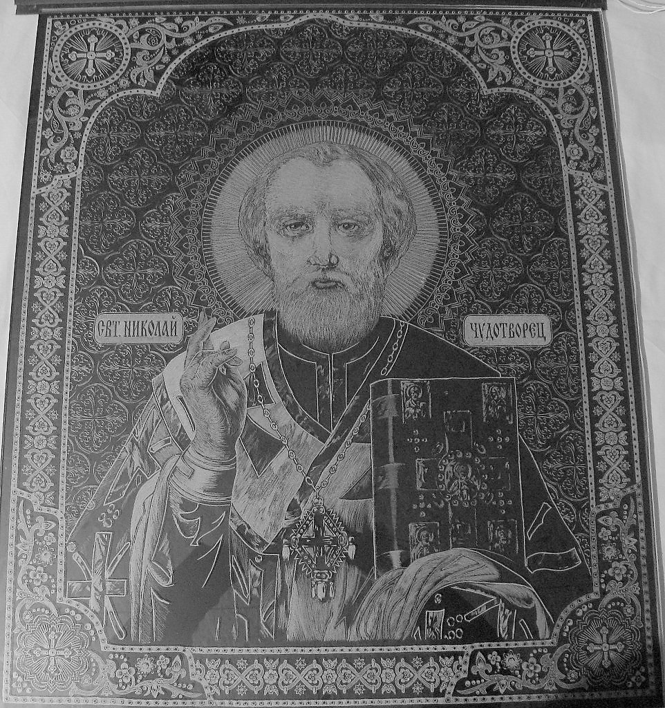 Изобразительное искусство / Компьютерная графика / Гравированная на стекле икона "Николай Чудотворец"