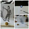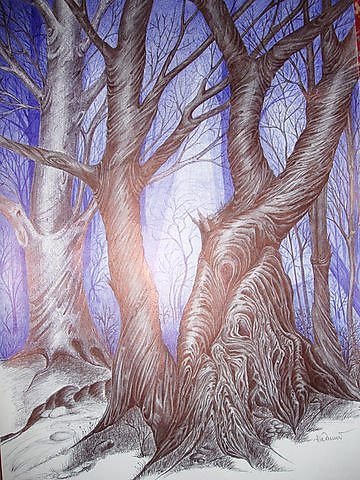 Свет в лесу, ручка шариковая двух цветов, бумага