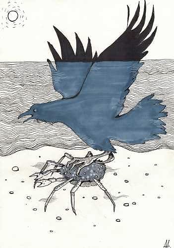 "Увидел однажды ворон Кутх на морском песке спящего краба. Подошёл к нему, стал будить: