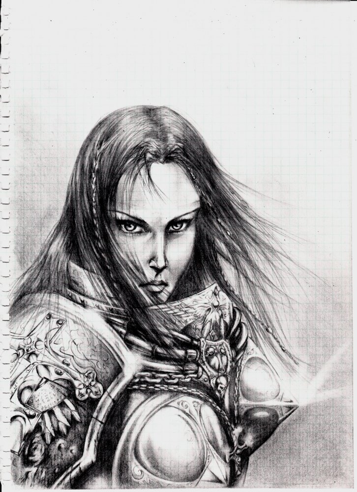 Выразительный образ. Решительный и твёрдый взгляд не оставляет сомнений, что сторонникам тёмных сил лучше держаться подальше. Элементы доспехов здорово прорисованны.