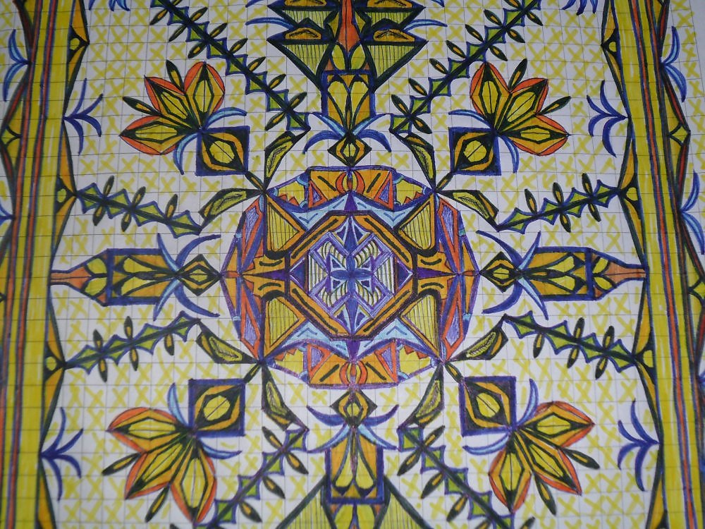 Выполнено на бумаге,фломастерами и черной гелевой ручкой.