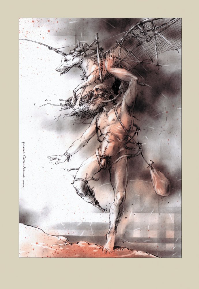 бумага, тушь, перо, соус, сангина