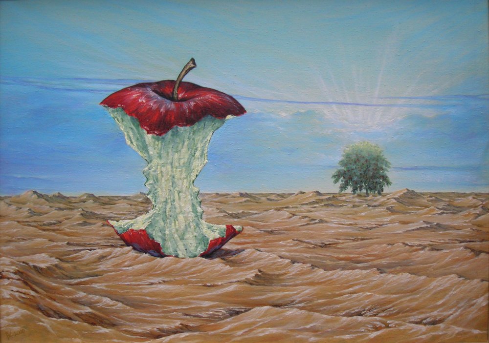 ))И кто доел яблоко, спрашивается, очень образный огрызок, как настоящий, столько мыслей появляется, глядя на этот рисунок, что символизирует остаток яблока, пустыня, очень здорово получилось!