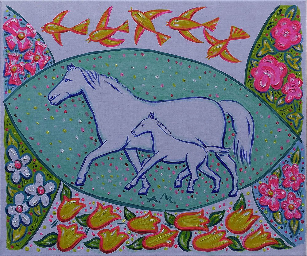 "Жеребенок, лошади ребенок" .Стиль - наив (примитивизм).