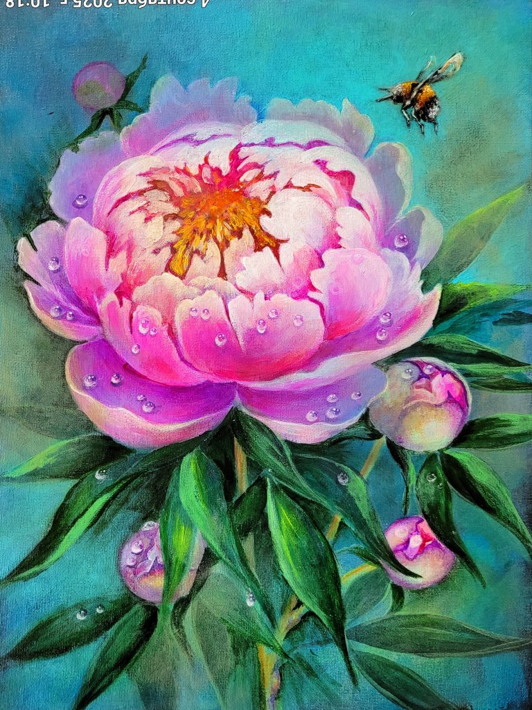 Акрил. Холст на картоне 30х40см (Вольная копия МК Ольги Базановой)