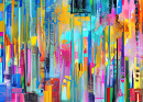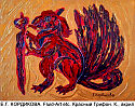 Красный неогрифон на золотом фоне. Fluid-Art.