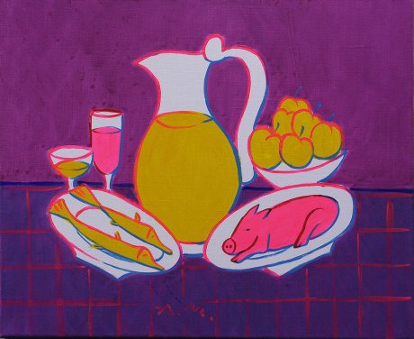 "Натюрморт с поросенком". Стиль - наив (примитивизм).