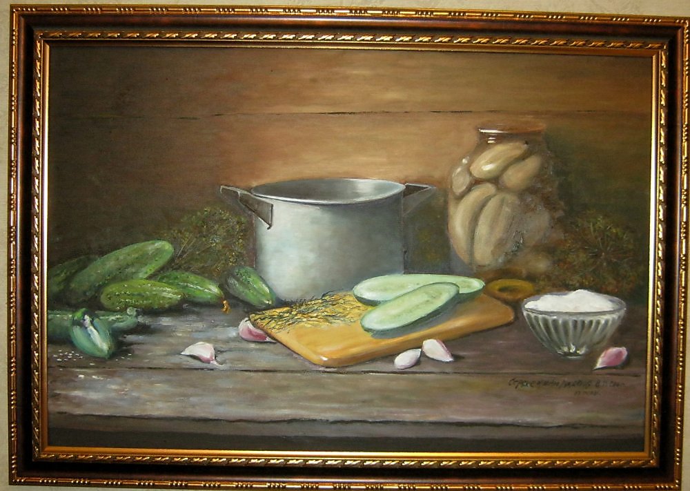 На этой картине все есть,чтобы засолить огурчики!Замечательный нартюрморт!