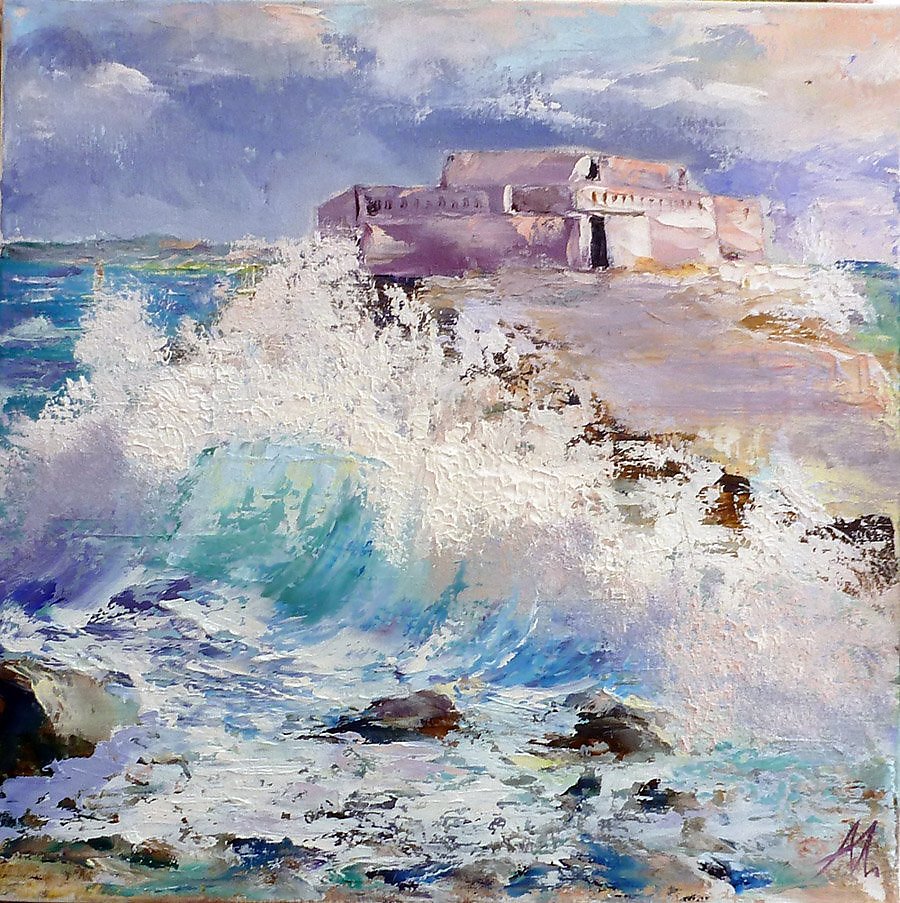 потрясающая свободная стихия волн слегка скованная берегом с бастионом..