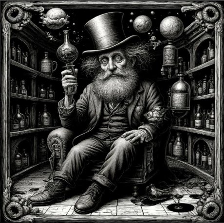 Изобразительное искусство / НЕЙРОСЕТЬ (изображения, сгенерированные нейросетью) / Поэт-алкаш в стиле Эшера