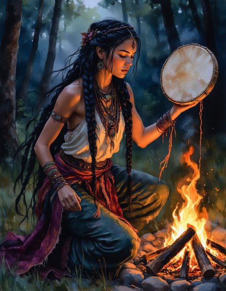 Изобразительное искусство / НЕЙРОСЕТЬ (изображения, сгенерированные нейросетью) / «Шаманка Нини» (𝓛𝓾𝓷𝓪 𝓛𝓮𝓷𝓪. Нейросеть "Шедеврум")