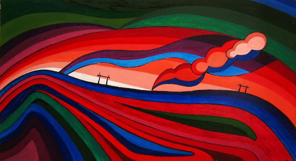 На горизонте вижу вьісоковольтную линию елекьропередачи, а за горизонтом дьім от заводской трубьі.