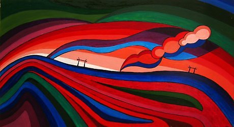 зритель думает- холм..а там завод дымит... и в дыму- закат переливается цветом ...на холме яркие цветы