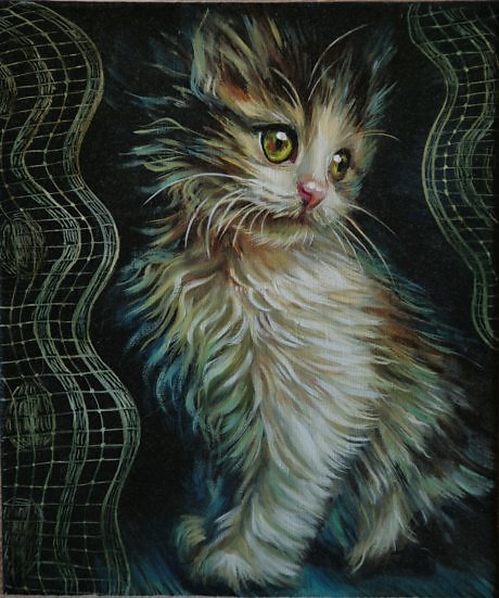 Очень сердечно передали настроение ожидания.Впечатление,что котенок может даже заплакать,если хозяйка через пару минут не придет.Уачи и победы в конкурсе!!!