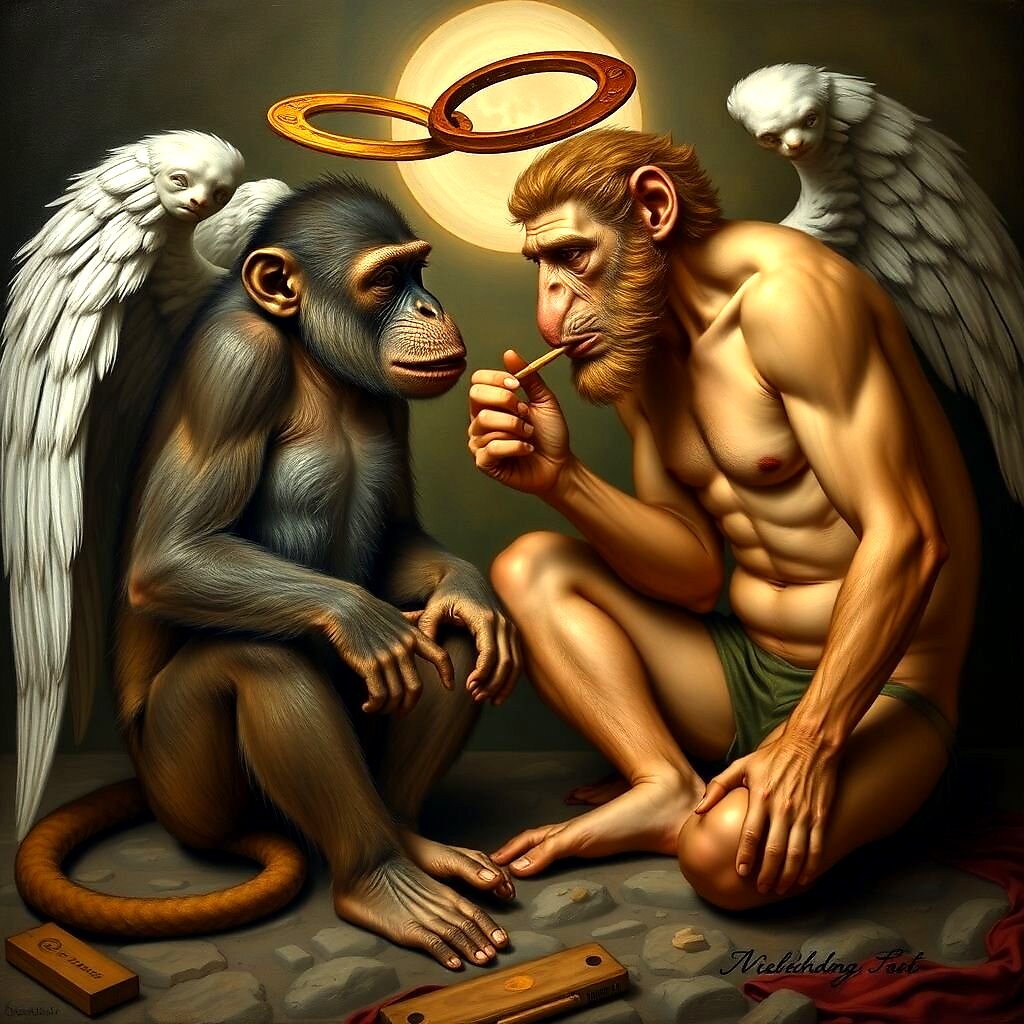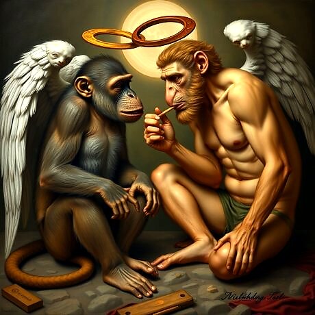 «Позвольте вам авторитетно возразить, сэр! Это лично я сотворил человека по образу и подобию своему! И это подтверждено документально с печатями юристов!» - с гордостью произнёс Чарльз Дарвин.