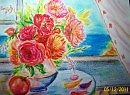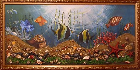 Работа выполнена маслом на холсте с добавлением натурального морского песка, камешек, ракушек, жемчужин и страз