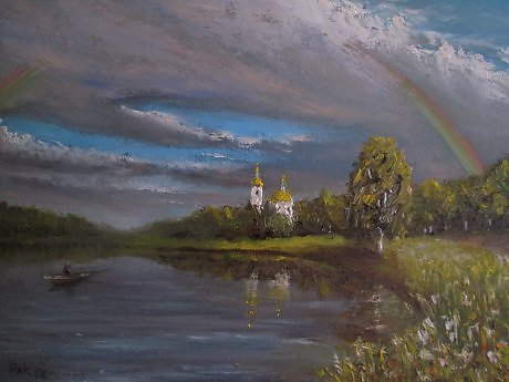 Красивый пейзаж! Радуга над храмом, символично, как дорога в небо!