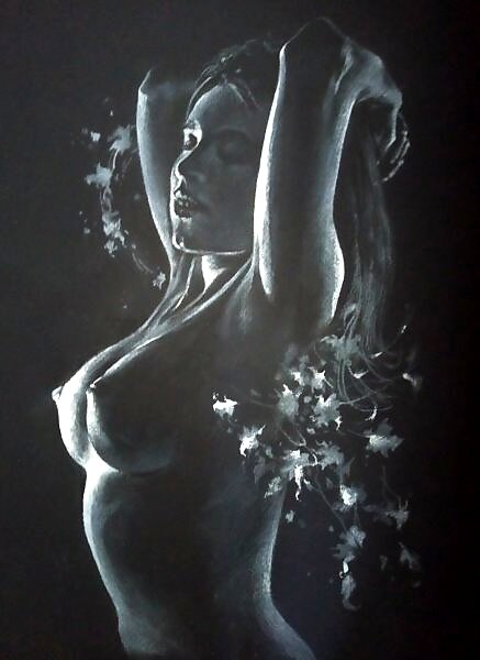 33Х23см Тонированная бумага, белый акварельный карандаш.