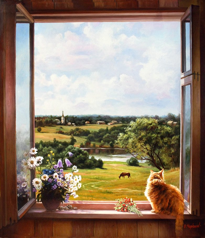 Изобразительное искусство / Конкурсные работы победители / Анонимный конкурс - "Вид из окна" (с 1.09.19г. по 10.10.19г.) / Лето, дача, рыжий кот