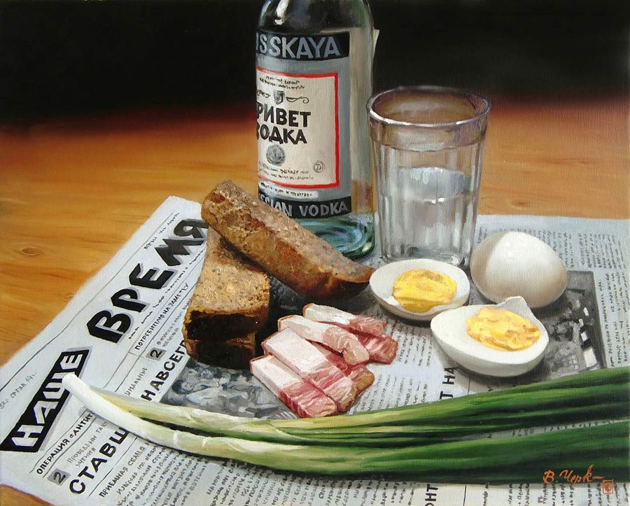 Конечно я не в кассу. .но может хватит представлять русский менталитет водкой в натюрморты рисовать восхваля это. Тему рисунка не поддерживаю не смотря на талант художника.