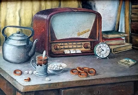 Понравилось. Написано добротно и достоверно. Дивайс похож на радиоприёмник "Стрела" воронежского радиозавода. Модель 1958 года. Папиросы Казбек, чай в стакане с подстаканником и сахар вприкуску - все в духе того времени.) Голосую.