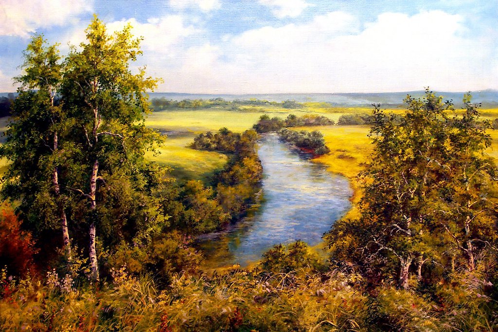 Прекрасная картина! Радуют глаз бескрайние поля, речка, прозрачный воздух!