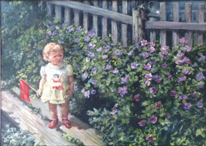 Очень хорошая работа,выдержана в старых традициях...девочка с флажком в руке,все говорит о празднике 1 мая!!!Удачи в конкурсе!!!