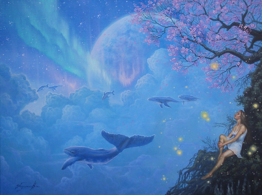 ИНТУИТИВНАЯ ЖИВОПИСЬ, РАБОТА ИЗ СЕРИИ ГРЕЗЫ СОЗНАНИЯ, РАЗМЕР 60-80 СМ., Х/М. В ЖИЗНИ КАЖДОГО МУЖЧИНЫ ЕСТЬ НЕСКОЛЬКО ЭТАПОВ. МЫ РОЖДАЕМСЯ, РАСТЕМ, СТАНОВИМСЯ ВЗРОСЛЫМИ, СТАРЕЕМ И УМИРАЕМ.....ВСЕ НАШЕ БЫТИЕ ПОДЧИНЕНО ВЕЛИКОМУ И ПРОСТОМУ ЗАКОНУ ВСЕЛЕННОЙ. ПРИХОДИТ МОМЕНТ, И МЫ ЗАДАЕМ СЕБЕ ВОПРОС, ЗАЧЕМ И ДЛЯ ЧЕГО МЫ ЖИВЕМ? ЧТО ДЕЛАЕТ НАШУ ЖИЗНЬ ОСМЫСЛЕННОЙ? НА ЭТИ ВОПРОСЫ КАЖДЫЙ ЧЕЛОВЕК МОЖЕТ ОТВЕТИТЬ ПО РАЗНОМУ, И БУДЕТ ПО СВОЕМУ ПРАВ....НО, ЕСЛИ ЗАДУМАТЬСЯ, ТО ВСЕХ НАС ОБЪЕДЕНЯЕТ И ПРИТЯГИВАЕТ, КАК КОЛОСАЛЬНЫЙ МАГНИТ, СИЛА КРАСОТЫ, ТАЙНА ВЕЧНОЙ ЖИЗНИ, КОТОРАЯ СКРЫТА В ЖЕНЩИНЕ....МНЕ ЧАСТО СНИТСЯ СОН С ПРЕКРАСНОЙ ДЕВУШКОЙ, НА НЕИЗВЕСТНОЙ, ФАНТАСТИЧЕСКОЙ ПЛАНЕТЕ. ОНА ТО ПЛАЧЕТ, ТО, СМЕЕТСЯ, ЕЕ ЛИЦО КАЖДЫЙ РАЗ МЕНЯЕТСЯ, И КАЖЕТСЯ ЧТО ЭТО ДРУГОЙ ЧЕЛОВЕК. МИР В КОТОРОМ ЖИВЕТ МОЯ НЕЗНАКОМКА ПОТРЯСАЮЩИЙ, НО, Я ЧУВСТВУЮ СЕРДЦЕМ, ЧТО ЗНАЮ ЕЕ ТЫСЯЧИ ЛЕТ....ИНОГДА, ТИХИМИ НОЧАМИ, В ПЬЯНЯЩЕМ БРЕДУ, КОГДА ЦВЕТНЫЕ ВЕТРЫ ОБДУВАЮТ МОЕ ЛИЦО, Я ТЯНУСЬ К ЛЮБИМОМУ ОБРАЗУ. ТОНУ, ЗАХЛЕБЫВАЯСЬ В ГЛУБИНЕ ЭТИХ БЕЗДОННЫХ ГЛАЗ.....СЛОВНО РАБ, СНОВА И СНОВА ОКАЗЫВАЮСЬ СВЯЗАН ВОДОПАДАМИ ЕЕ ВОЛШЕБНЫХ ВОЛОС.... Я ТЫСЯЧИ РАЗ БЫЛ РАСПЯТ И ОБМАНУТ ЭТОЙ КРАСОТОЙ, СРЫВАЯСЬ В ПРОПАСТЬ, МОЕ СЕРДЦЕ РАЗРЫВАЛОСЬ ОТ СТРАХА СМЕРТИ, И ВОСКРЕСАЛО ВНОВЬ.....ПОТОМУ ЧТО ВЕРИТЬ В ЖЕНЩИНУ, ЗНАЧИТ ВЕРИТЬ В ЖИЗНЬ....!