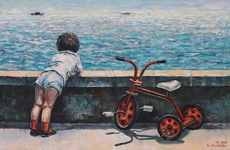 Хороший какой малыш. То ли папу из рейса ждет, то ли просто жизнь познает Отличная картина.Удачи!