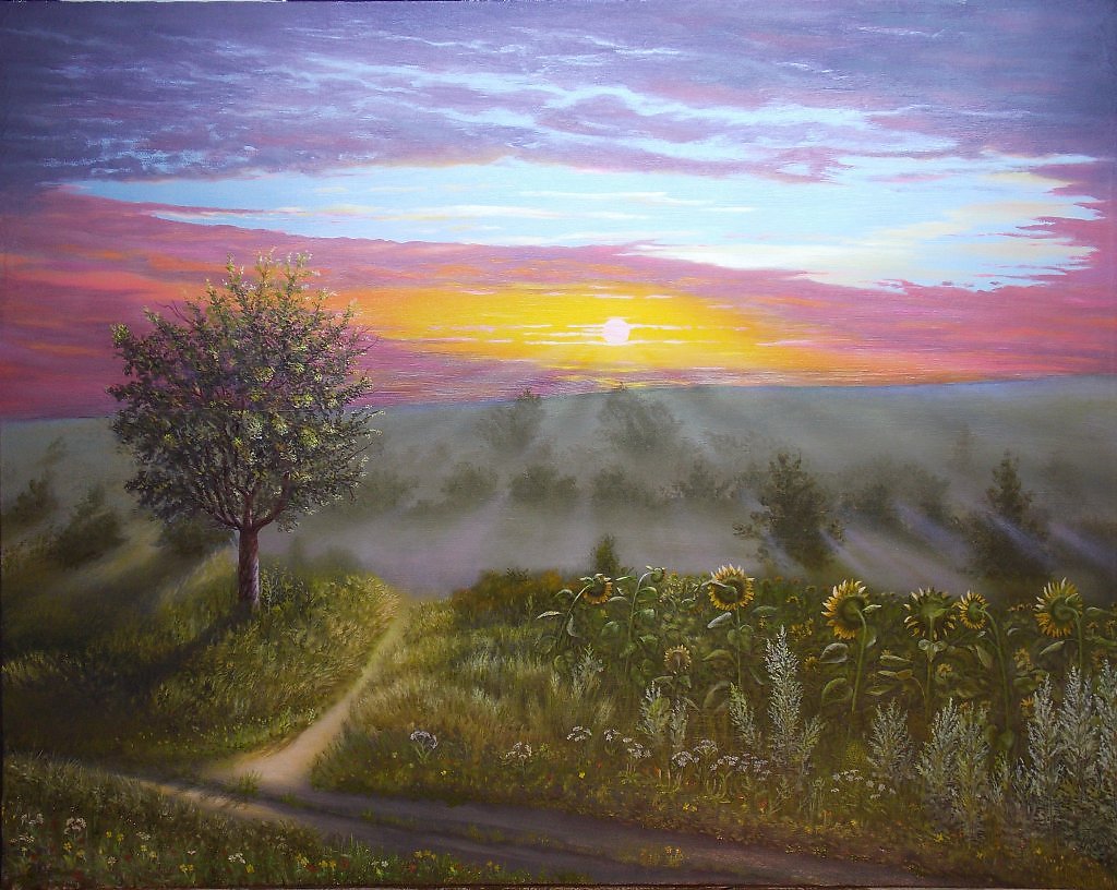 Подсолнухи на переднем плане - клёво) Игра света, перспектива, небо обалденное - работа СУПЕР!)