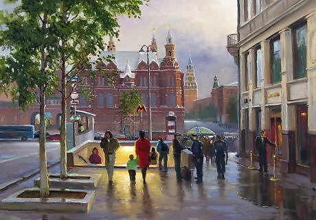 Замечательная работа! Лучшая из всех представленных. Кругом лужи, серое небо. Глядя на картину, мы чувствуем, что воздух пропитан только что прошедшим дождём