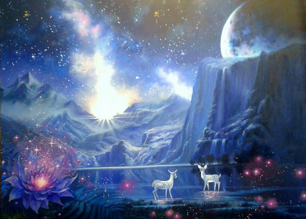 РАБОТА ИЗ СЕРИИ "ГРЕЗЫ СОЗНАНИЯ", РАЗМЕР 60 - 80 СМ., Х - М., 2019 Г.......МНЕ ЧАСТО СНЯТСЯ СНЫ О ДАЛЕКИХ МИРАХ, ГАЛАКТИКАХ И ТАИНСТВЕННЫХ ПЛАНЕТАХ. СВЕТ И ЭНЕРГЕТИКА, КОТОРЫЕ ЛЬЮТСЯ ИЗ МОИХ ВИДЕНИЙ, ПОМОГАЮТ МНЕ ЖИТЬ И ТВОРИТЬ....В БЕСКОНЕЧНОЙ, ЗВЕЗДНОЙ ДАЛИ, СРЕДИ ТУМАННОСТЕЙ И ПРЕКРАСНЫХ ГАЛАКТИК, ПЛЫВЕТ ЗАЧАРОВАННАЯ ПЛАНЕТА......ЕЕ ВОЗДУХ, СЛОВНО СВЕЖИЙ, МОРСКОЙ БРИЗ, ПРОПИТАННЫЙ МЕДОМ ФАНТАСТИЧЕСКИХ ЦВЕТОВ......ЕЕ ГОРЫ, СЛОВНО НЕВЕДОМЫЕ ГОРОДА, ОСВЕЩАЮТСЯ ЛУЧАМИ УТРЕННИХ ЗВЕЗД......ЕЕ ВОДЫ, СЛОВНО ХРУСТАЛЬНЫЕ ДОЛИНЫ, ОТРАЖАЮТ СВЕТ МЕРЦАЮЩИХ СОЗВЕЗДИЙ, ОМЫВАЯ И ВОЗРАЖДАЯ К ЖИЗНИ ВСЕ, ЧТО ОКРУЖАЕТ ПРОЗРАЧНЫЕ РОДНИКИ.....РОДНИКИ ЖИЗНИ!
