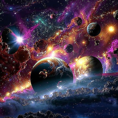 Очень красивая космическая картинка. Крсмос словно создан из драгоценных камней! Все гармонично и со вкусом. Удачи!