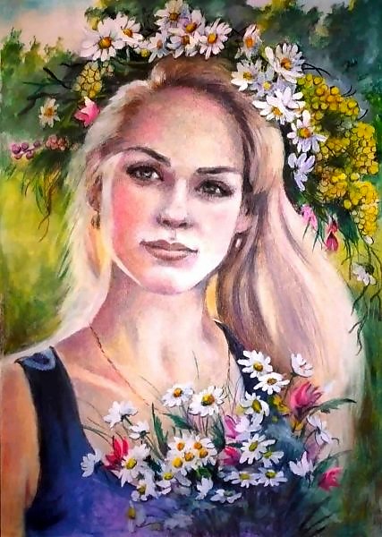 Портрет девушки с цветами как образ лета! Сам работаю много втехнике пастели! Ваш образ и исполнение мне понравились!
