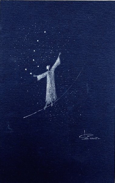 СКОЛЬКО ЗДЕСЬ СМЫСЛОВЫХ УРОВНЕЙ! РИСУНОК - СЛОВНО МНОГОЭТАЖНЫЙ ДОМ. СКОЛЬКО МАСТЕРСТВА И МУЖЕСТВА НУЖНО, ЧТОБЫ ВСТАТЬ ЛИЦОМ К ЛИЦУ С СОЗВЕЗДИЕМ! КАК ВЕЛИК ЧЕЛОВЕК, ПОДНИМАЮЩИЙСЯ ДО КОСМИЧЕСКИХ ВЫСОТ! И ОДНОВРЕМЕННО КАК ОН СМЕШОН! ВЕДЬ ПРИКОСНОВЕНИЕ К СОЗВЕЗДИЮ - ВСЕГО ЛИШЬ ИЛЛЮЗИЯ... НО РАДИ ЭТОЙ ИЛЛЮЗИИ МЫ ТРАТИМ ГОДЫ ЖИЗНИ. МОЖЕТ, И ВСЯ НАША ЖИЗНЬ - ИЛЛЮЗИЯ? КАК МНОГО МЫСЛЕЙ ПРОБУДИЛ ВАШ РИСУНОК! И ЭТО ЛИШЬ ПЕРВОЕ ВОСПРИЯТИЕ.