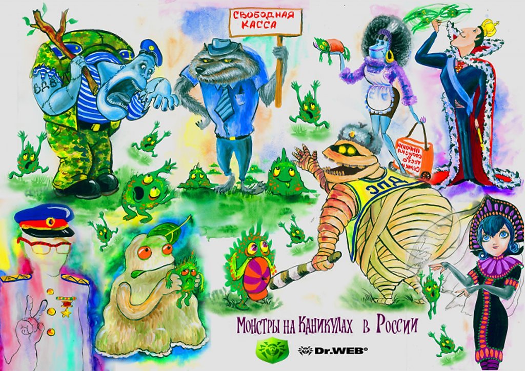Изобразительное искусство / Конкурсные работы победители / Авторский конкурс – «Монстры на каникулах в России с «Доктор Веб» (с 15.10.15г. по 23.11.15г.) / Монстры на каникулах в России)))и по русски))