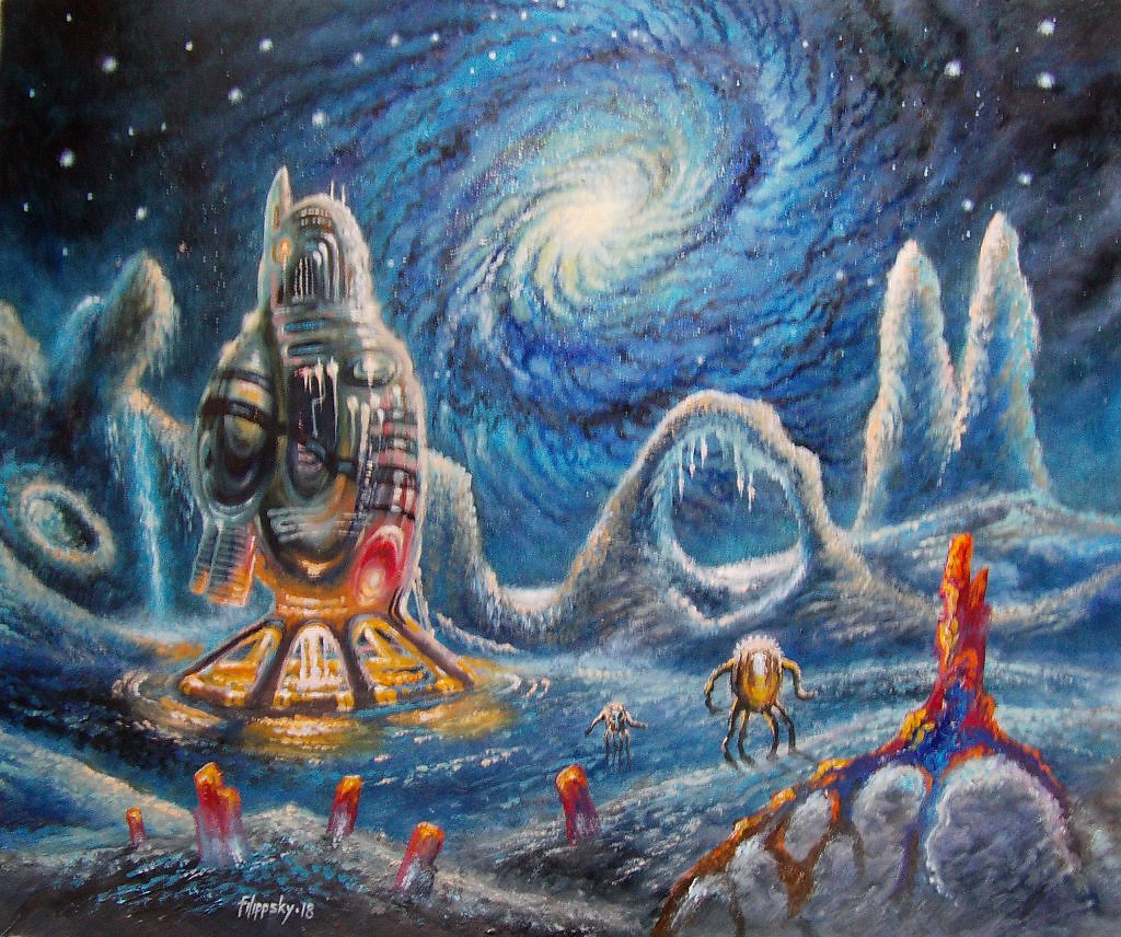 Изобразительное искусство / Конкурсные работы победители / Анонимный конкурс - "День космонавтики" (c 1.03.18г. по 11.04.18г.) / Межгалактический пейзаж.
