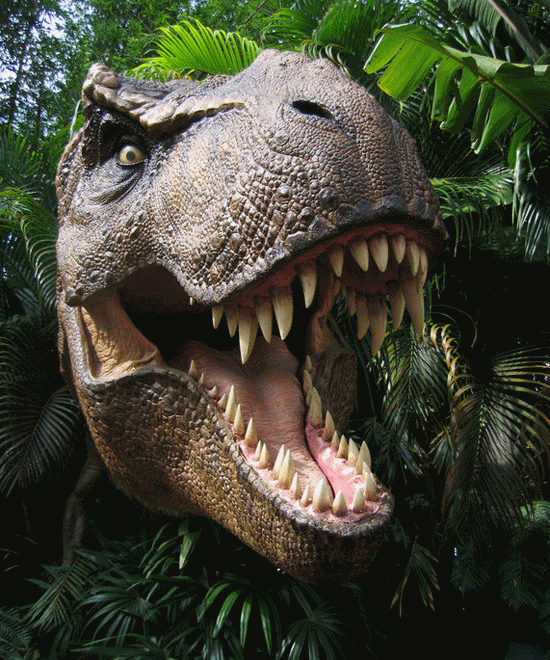 Тиранноза́вр (лат. Tyrannosaurus) — род плотоядных динозавров конца мелового периода. Наиболее крупный и известный в популярной культуре представитель рода — Tyrannosaurus rex, один из крупнейших наземных хищников: длина тела ~ 15 м(Следует учитывать, что позвонки соединялись между собой с помощью хрящевой ткани, поэтому при жизни животное было немного длиннее.), высота — 7—8 м, масса — около 8 тонн(хотя в фильме BBC "ПРАВДА О ДИНОЗАВРАХ УБИЙЦАХ" указывается масса в 15 тонн,но как бы то ни было это был тяжелейшим сухопутным хищником в истории).[1][2] Открыт в 1902 году в США. Описано более 30 находок T. rex, все они принадлежат формациям возрастом примерно 68—65 млн лет назад.