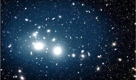 Данное исследование выявило удивительный факт: эти звезды обращаются вокруг точки между двумя самыми яркими галактиками в скоплении.
