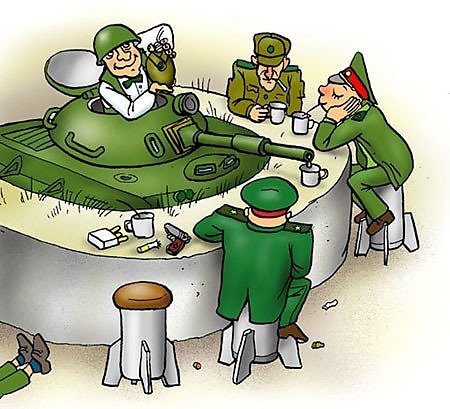 Бравый военный министр Язви-его-душу приказал своим бравым генералам боевые телеги в столицу выкатить, чтоб поняли нерадивые тьму-тараканцы, кто истинной силой в государстве обладает. А бравый генерал Вареник приказал бравому полковнику Гусю подкатить свои боевые телеги к белой боярской палате, в которой непокорный боярин Борис сидел и оттудова своей Запивонихой правил. Бравый полковник Гусь тут же команду выполнил, окружил белую боярскую палату боевыми телегами, зарядил пушки боевыми ядрами, развернул стволы в сторону палат боярских и стал ожидать других приказаний, чтоб их незамедлительно исполнить.