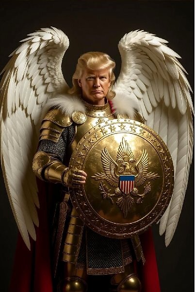 Вот он, Дональд Трамп, в сиянии белого ангела, несущего мир. В этой ипостаси он выступает как миротворец, стремящийся к урегулированию конфликта на Украине, предлагая пути к диалогу и взаимопониманию. Его слова звучат как призыв к прекращению кровопролития, как надежда на восстановление стабильности в регионе.