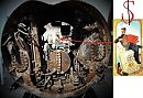 с привинченными мохнатой лапой крутыми рогами со свастикой
