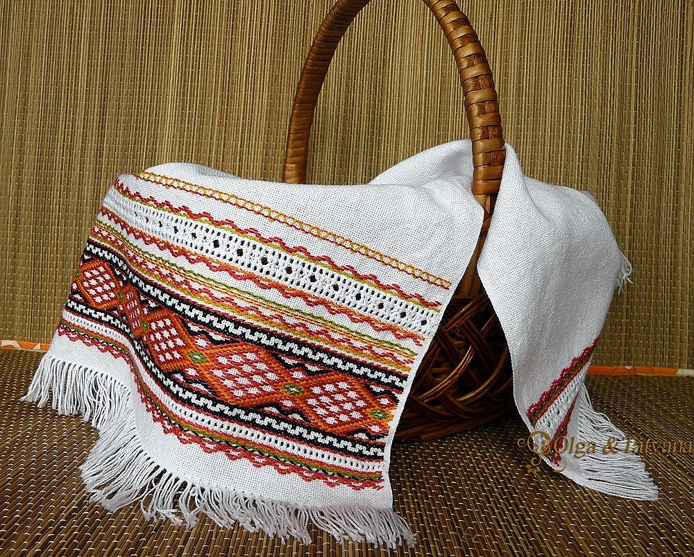 Ручная вышивка на домотканом рушниковом полотне. Использованы разные техники вышивки, мережки (из ткани выдергиваются нитки и оплетаются определенным образом).