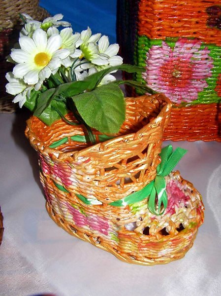 Кашпо башмачок из газетных трубочек