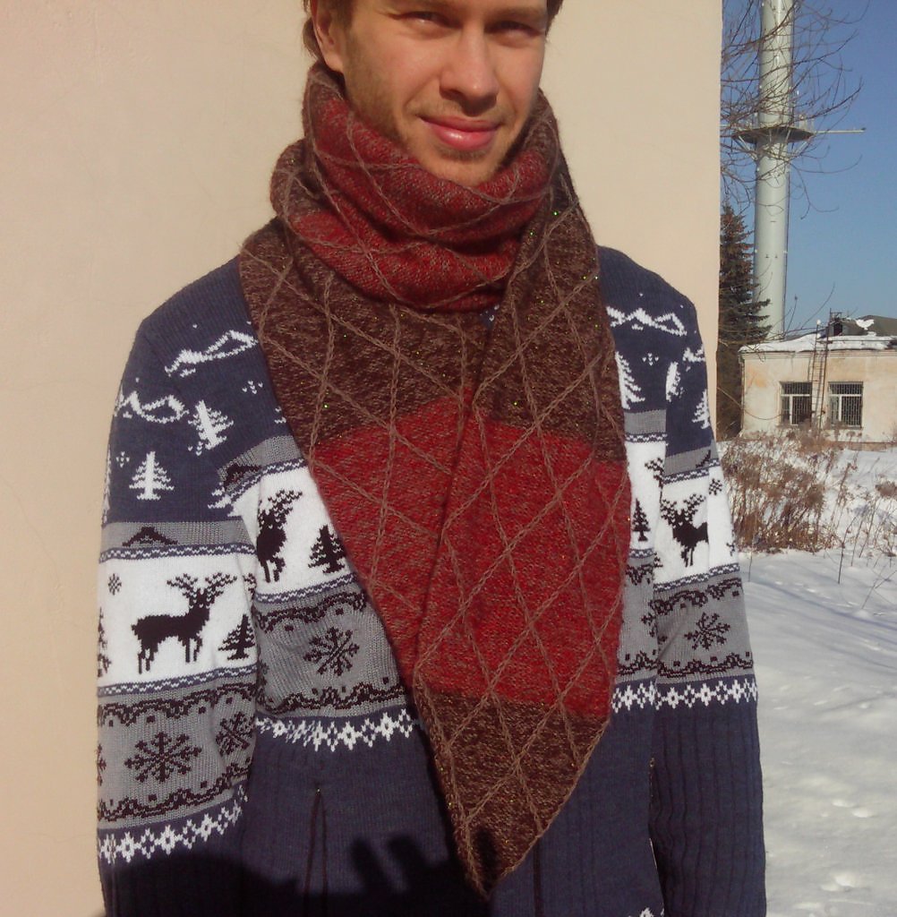 прекрасный шарф. а главное, что очень красиво он на этом парне смотриться. удачи вам в конкурсе!