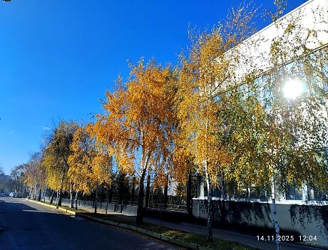 А пейзаж - сказка осени. Блеск листвы деревьев в золоте от солнечных лучей, на фоне василькового неба. Красота !